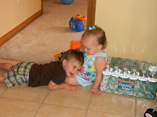 The kids have been playing together relatively well lately. Their favorite thing to do is have tea parties (which kills Kevin) and play with pretend food. The both have learned to clean up the toy room and for a small price (a dollar), will do it without complaining. They are doing great back at Jene's and more often than not, I have a hard time getting them out of there in the afternoon.